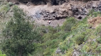 Esta subida es larga, con algún tramo corto con piedras sueltas, algún rellano, pero en general largo y con bastante desnivel. No tiene esos rampones como Las Boticarias o Las Haciendas, pero tampoco tiene ni una bajada ni un descanso en todo el camino. Y el lugar.... gana por goleada. Precioso. Merece la pena pararse, mirar al barranco y escuchar ..... silencio. Solo roto por el ruido lejano de algun vehículo a motor de las carreteras colindantes al barranco.